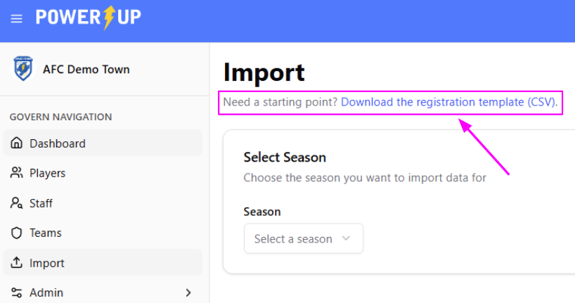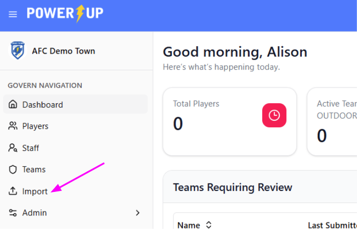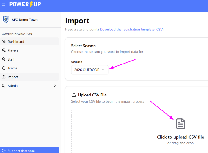 Before any teams can be approved, or rosters created for the season, you'll need to get your players and team staff into the Ontario Soccer Govern module. For clubs not using PowerUp as their registration software, this is done via an Import.