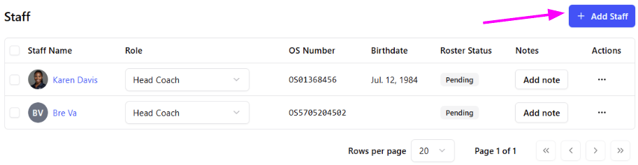 Near the bottom of the page, on the right, click the blue Add Staff button